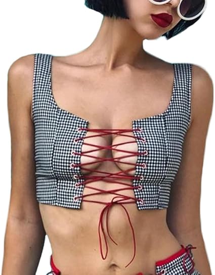 Amazon Com Women Lace Up Crop Top Eyelet Sleeveless Cami Tank Top Party Clubwear Floral Bustier Clothing Shoes Jewelry